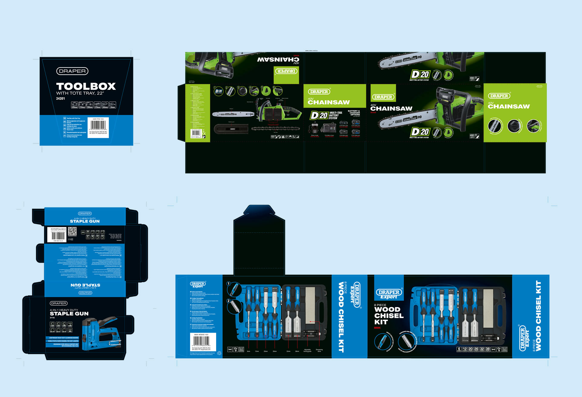I was asked to bring the brand back under control and create a more consistent, modern identity across a wide product range. The work also needed to improve clarity for customers and roll out easily across all channels, for both Draper and Draper Expert.