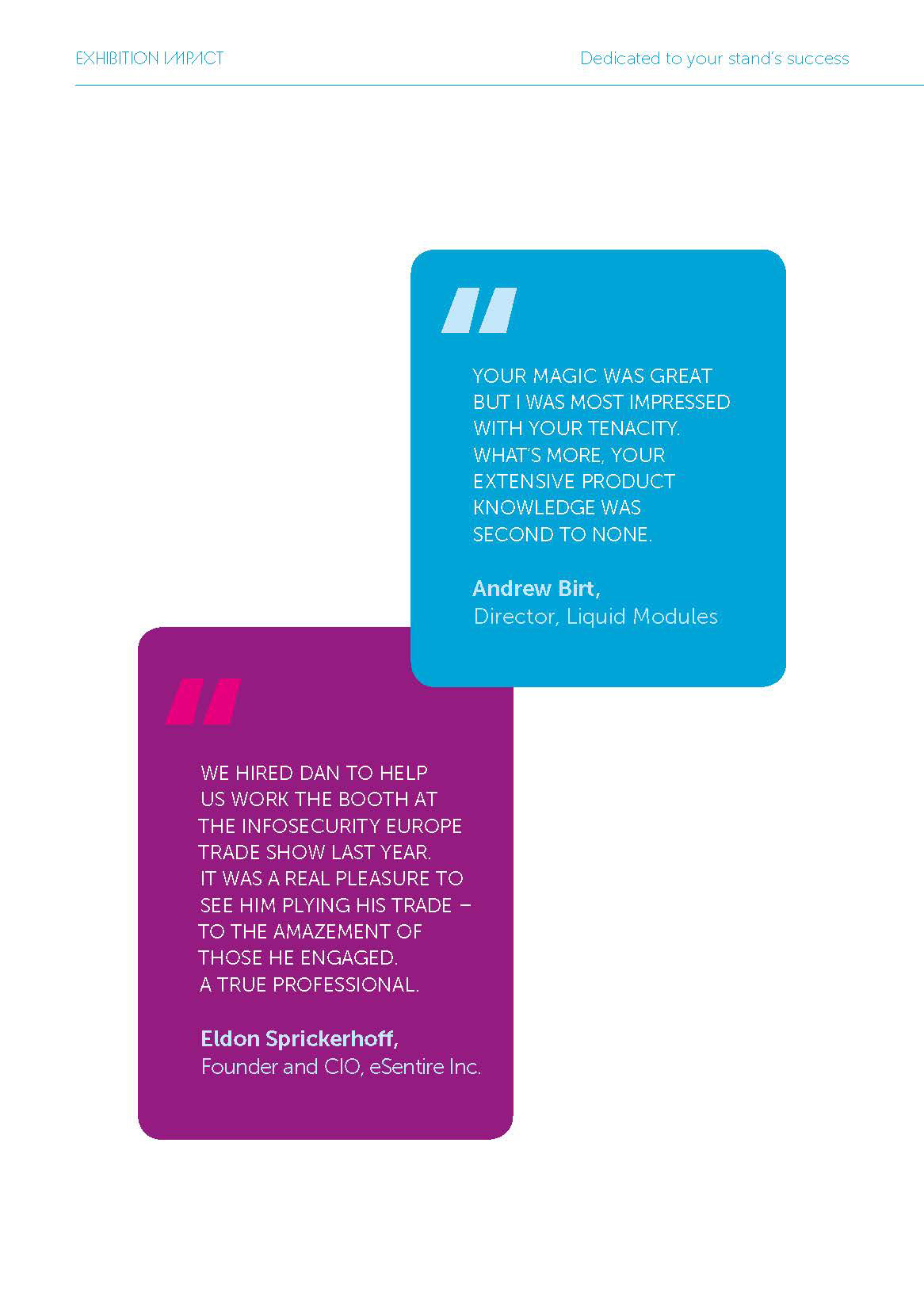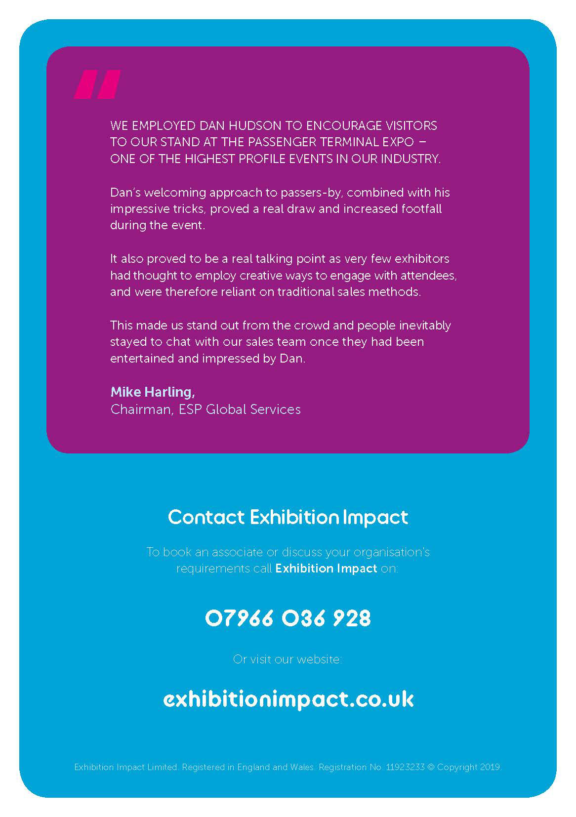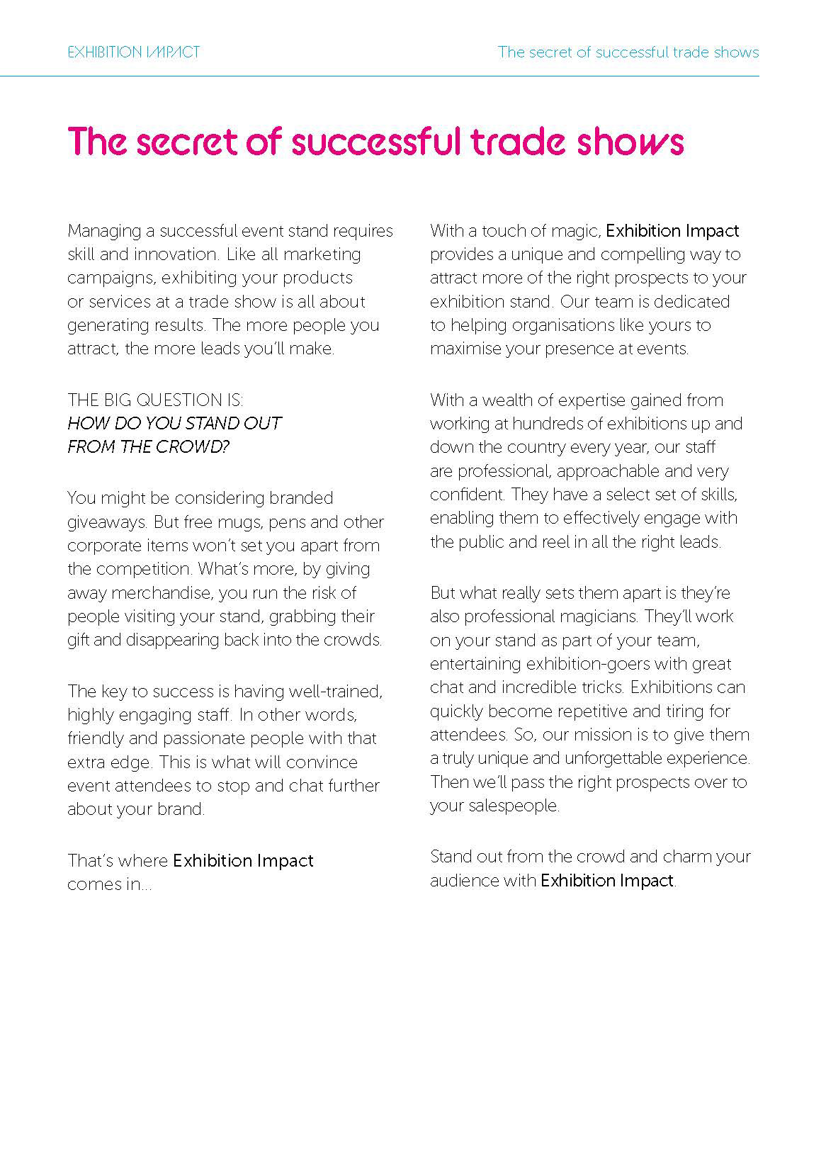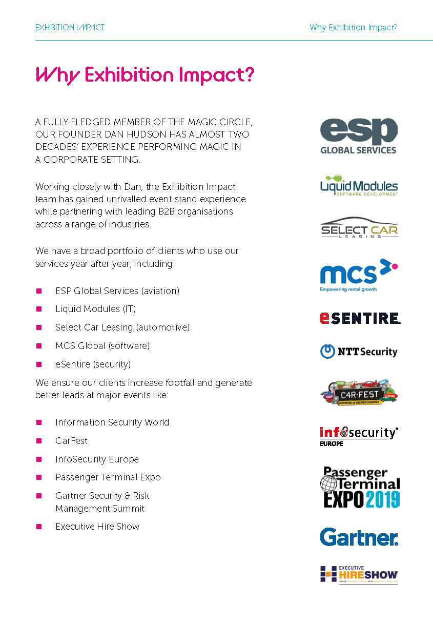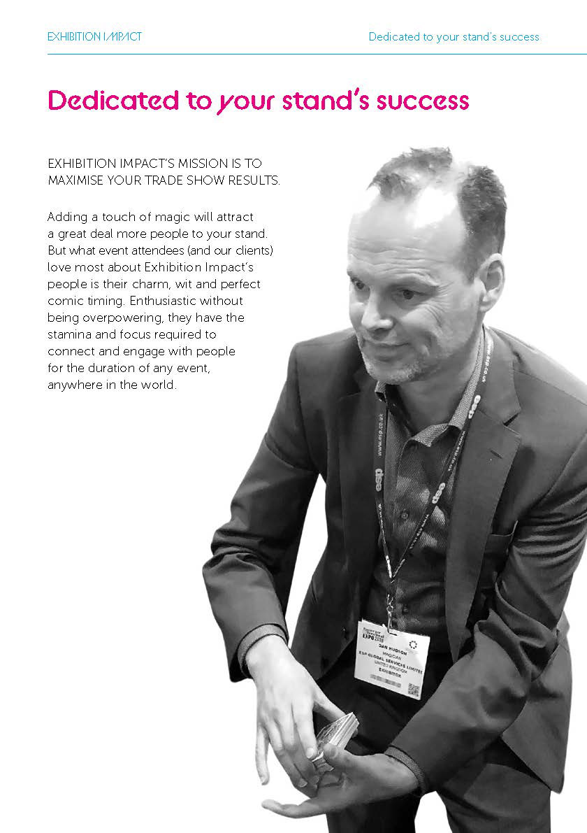 Exhibition Impact was built around using close-up magic to attract attention at exhibition stands. The challenge was to create a brand that explained this clearly without feeling unclear or overcomplicated.