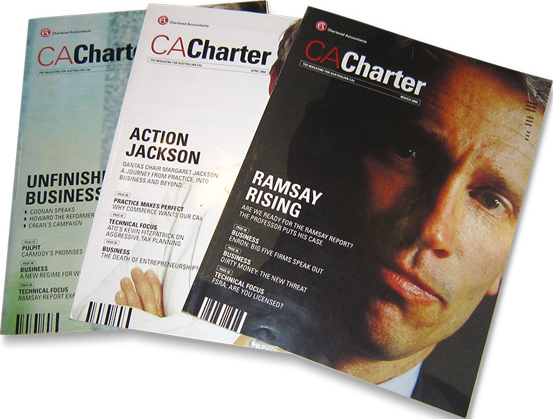 CA Charter is a leading monthly magazine for chartered accountants in Australia. I was responsible for the full design and production of each issue — from creative direction and layout through to photography, advertising management and print delivery.