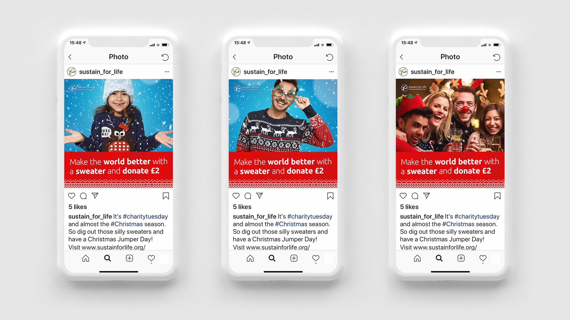 Sustain for Life needed a Christmas campaign that would stand out on social and encourage donations. The challenge was to keep it light and seasonal while still reflecting the charity’s purpose.